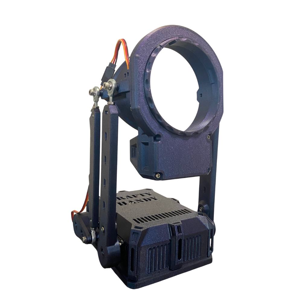 Three servos are integrated into a single base, eliminating the traditional design where servos were separated from the sides. This makes the overall device simpler, more portable, and lighter.